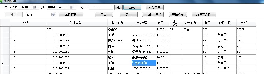 從用友的提取產(chǎn)品BOM,逐級(jí)展開(kāi)到*末級(jí)材料,然后從價(jià)格庫(kù)中提取單價(jià),卷積運(yùn)算到每個(gè)層次的成本,按順序由低層到高層完成所有成本BOM層次的標(biāo)準(zhǔn)成本計(jì)算。